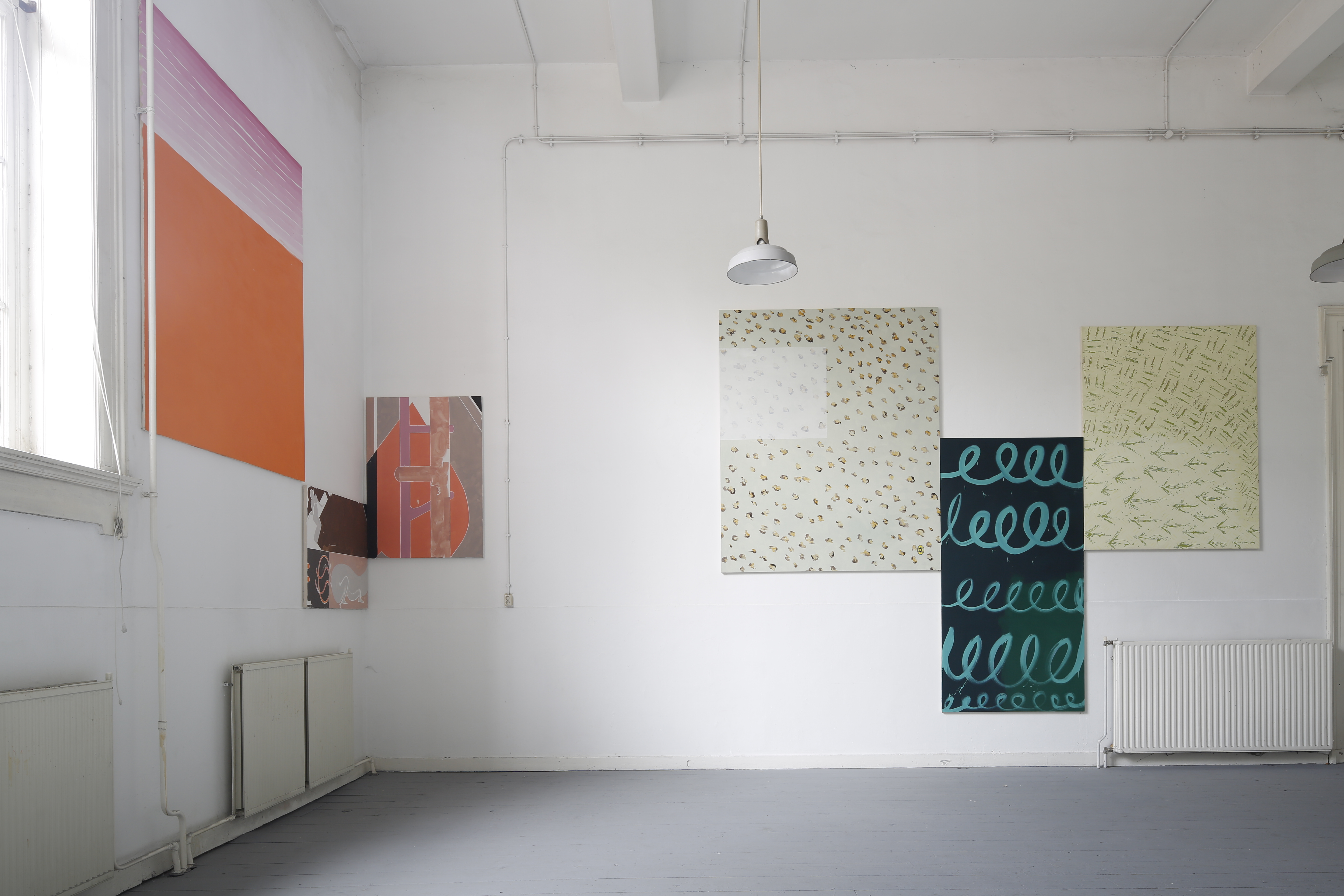 Another important reference is poetry: Von Zimmermann’s method involves writing poems reflecting on her painting. The visual arrangements of concrete poetry are important too: for this exhibition, the artist combines her paintings in a room-encompassing installation, in which each individual painting functions as a kind of abstract visual phoneme. Together, these seperate elements form larger constellations - rhythmically composed groups of works, painted in a variaty of formal and textural approaches.